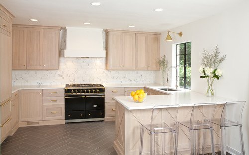 Like Islands, peninsulas can be used in conjunction with most of the above kitchen layouts, though they are most commonly paired with L-shaped and horseshoe kitchens. Peninsulas are cabinet outcroppings joining a wall or an adjacent counter on one end.
